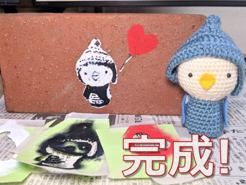 レンガにピースを描いてみました。