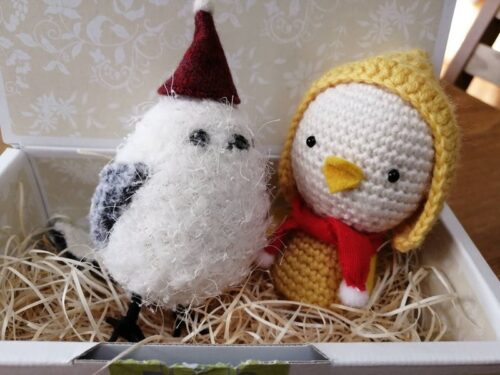 シマエナガちゃんが来たよ! コビトトリさえずり 2021.12.172023.02.08 ハッピー 幸せの黄色いコビトトリ ハッピーです。 先日、新しい仲間が届きました。 Kさん、ありがとうございました💛 北海道の冬の主役! シマエナガちゃんです! 「ねえねえ、帽子、取替っこしようよ!」 「うん、いいよ!」 ボクのマフラーもかわいいでしょ~? この布は「幸運のおすそわけ」なんだよ! 巣鴨のおみやげにいただきました😄 「赤🔴」ってホントに元気が出るよ! Ⅰさん、ありがとう💕