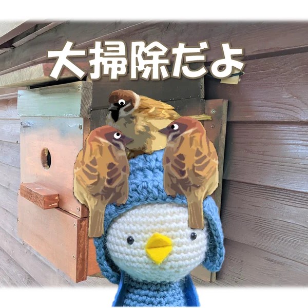 スズメたちが巣箱を見に来るんだけど…