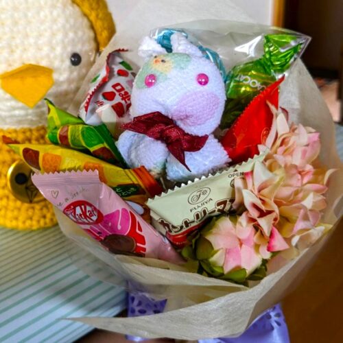 そして、実行委員も4月生まれということで、可愛くて美味しいスナックのブーケいただきました💛ハンカチでできたウサギさんも🐰(今年の干支)柄は、なんとヒヨコです~🐣お心遣いありがとうございました😍